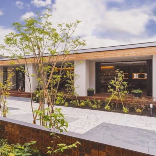 【ガラス張りで明るい外観】大きなガラス窓が並ぶ外観は、店内の明るさと開放感を外からも感じられるデザイン。初めて訪れる方でも入りやすい雰囲気があります。